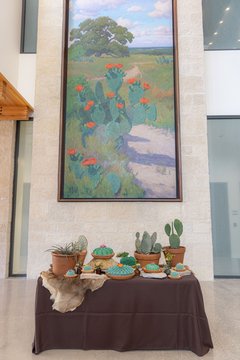 Don Strange of Texas provided catering and decor for this event, including their signature cactus themed cakes. This dessert spread perfectly matches the breathtaking mural titled A New Home from renowned Corpus Christi artist, Noe Perez that welcomes you upon entry. Photos courtesy of Katie Clementson at Billo Smith Photography.