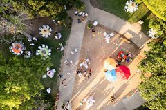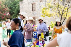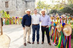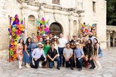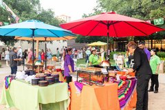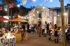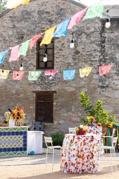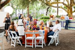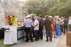 This darling bride and groom introduced their guests to San Antonio for their wedding weekend with a festive welcome reception in both Alamo Gardens and the Ralston Famiy Collections Center. The event was designed by Carrie Catalani, catering by Rosemary's Catering, decor by Feather, Fluff, and Flings, rentals from Illusions, with photos courtesy of John Cain Photography.