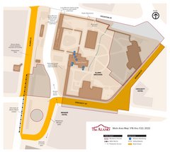 Crockett Street in front of the Menger Hotel remains closed to vehicular traffic but is now open for use as a temporary valet area for the Menger Hotel. This portion of the street remains open to pedestrian foot-traffic. Fencing in Alamo Plaza has been reduced. A portion of the south end of Alamo Plaza, including sections of Bonham, Crockett, and Alamo Streets are still closed for Alamo Plan Phase One construction.