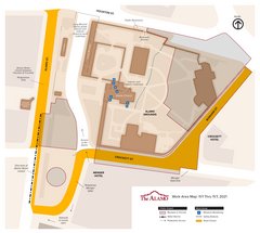 Crockett Street in front of the Menger Hotel remains closed to vehicular traffic but is now open for use as a temporary valet area for the Menger Hotel. This portion of the street remains open to pedestrian foot-traffic. Fencing in Alamo Plaza has been reduced. A portion of the south end of Alamo Plaza, including sections of Bonham, Crockett, and Alamo Streets are still closed for Alamo Plan Phase One construction.