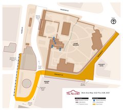 Crockett Street in front of the Menger Hotel remains closed to vehicular traffic but is now open for use as a temporary valet area for the Menger Hotel. This portion of the street remains open to pedestrian foot-traffic. Fencing in Alamo Plaza has been reduced. A portion of the south end of Alamo Plaza, including sections of Bonham, Crockett, and Alamo Streets are still closed for Alamo Plan Phase One construction.