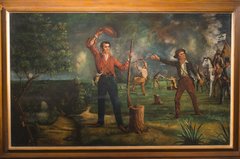 This painting depicting Benjamin Rush Milam calling for volunteers is an important piece in the history of Texas. It gives the viewer a glimpse into the Battle of Bejar, the first battle for the town, which would eventually lead the more famous Battle of the Alamo. This painting was completed in 1901 and was later donated by members of Milam’s family. It was restored in 2015 with a grant from the Elizabeth Huth Coates Charitable Foundation of 1992.