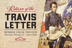 The Travis Letter has traveled from Austin with DPS escort to return to the Alamo, the place where it was written. Make plans to see this state treasure, back at the Alamo for the first time since 2013! Avoid the lines and be among the first to see the letter during this exclusive sneak preview! Not a member? Join today!