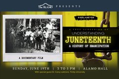 In honor of Juneteenth, join us for a viewing of Understanding Juneteenth: A History of Emancipation in Alamo Hall. Before the screening, hear remarks from guest speaker, Carey Latimore, Ph.D., associate professor of history at Trinity University and author of the Alamo’s report on Civil Rights in San Antonio: WWII to 1960s.